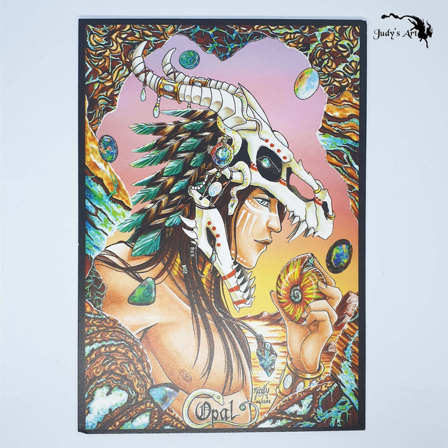 - "Opal" : Portrait indigène représentant l'Opale d'Australie. Le masque de dragon symbolise le mythe du serpent Arc-en-ciel.